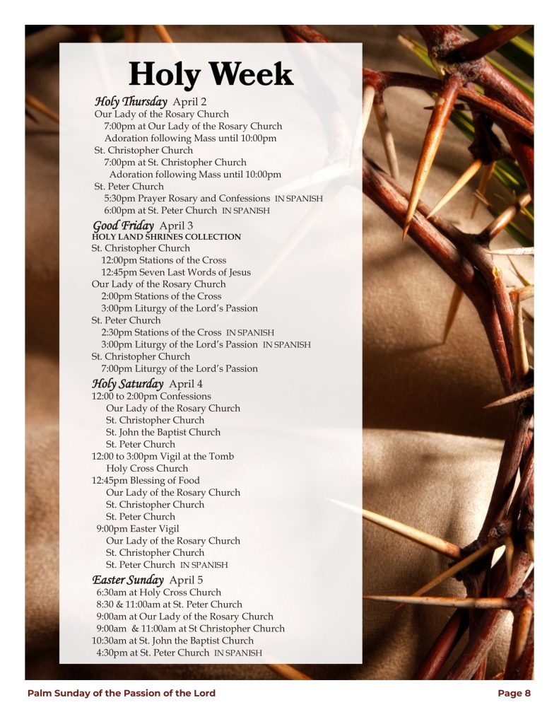 4. I have attached the SGFP Holy Week Schedule for Mass times and locations.