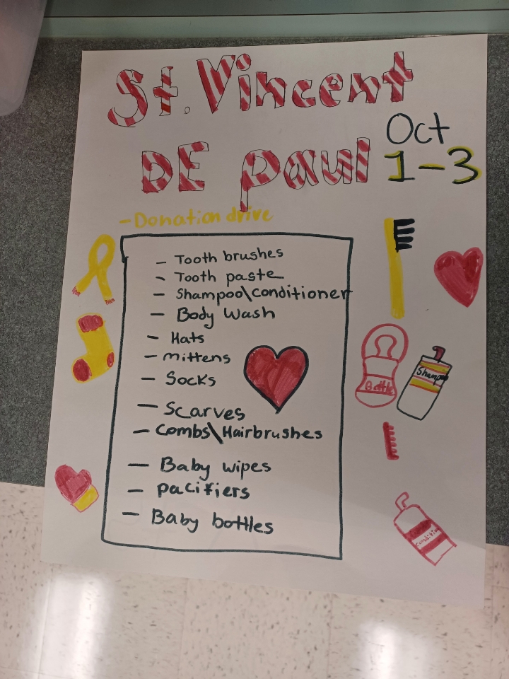 6. Please see the attached flyer from our 5th Graders who are holding a donation drive to support St. Vincent DePaul.
