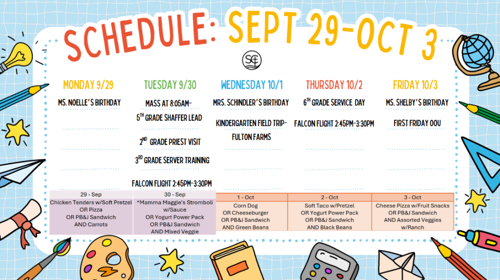 1. Recess volunteers are needed. If available, please contact Mrs. Schindler- jschindler@sc.sgfp.org.